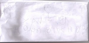 Troy is making huge gains with reading and writing. He brought home an excellent report card last semester, and his teacher has said he is making good effort with creative writing. For example, he was supposed to color a picture and write a story about it. The picture was of two kids on the seesaw. He did a sloppy job of coloring the girl in the seesaw all pink (pink hair, face, dress, shoes). In his short essay he wrote “The girl on the seesaw is seasick.” That’s effort!