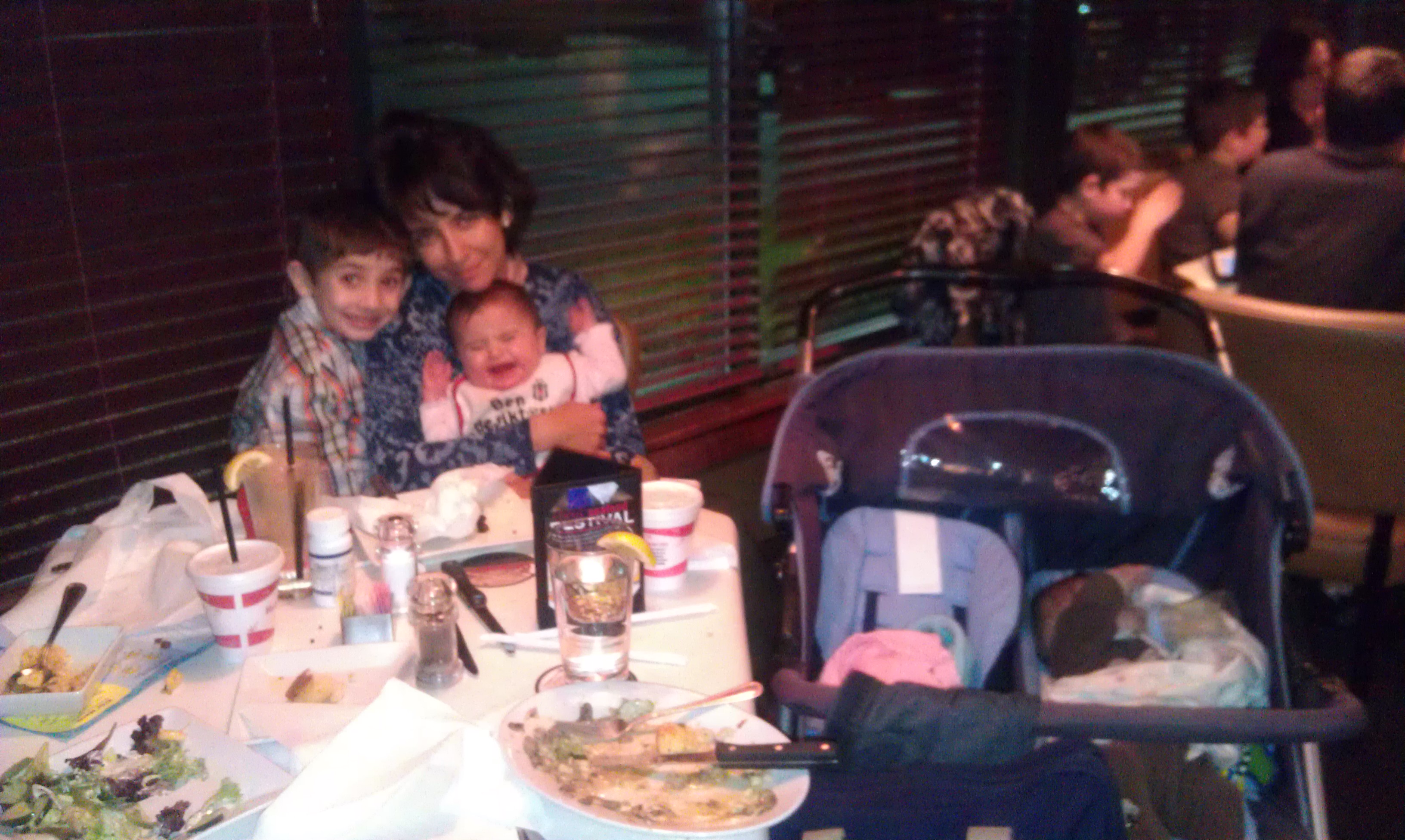It was the second day of driving (11 hours) that he began to lose patience. His baby brother had crying fits starting at 7PM, we stopped a few times on the road, including one stop at a Cracker Barrel and sat in the rocking chairs. You can see the fatigue in my eyes, the crying baby and the smile on Troy’s face–staying positive!