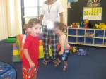 Camp school friendsJuly 6 was the start of an exciting day for Troy Destan. 2 week camp! We referred to it as “Camp School,” practiced him eating out of a lunch bag,  and told him about all the new friends he would make. Well, Day 1, 2, & 3 I came to pick up him up after 3 hours only to find his eyes red and filled with tears. Apparently he spent most of the session crying, wouldn’t go swimming with the other children, or eat his lunch. Interestingly, at home he had lots to tell us about his day: dancing, wiggling, magic show, big snake and kimono dragon from the zoo.  The next 3 sessions went by better, and he would eat his lunch and not be crying when I came to pick him up. The other children in his class were so friendly, always running to him when he walked in, or trying to hold his hand on the way to the pool. Troy was much more friendly with the children in Kindermusic, probably because Mommy was with him! We did an Oceans & Beaches themed class accompanied by another awesome Kindermusic CD (thanks Miss Charlotte!), and he absorbed the content really well, memorizing story lines such as  “I like the beach!”